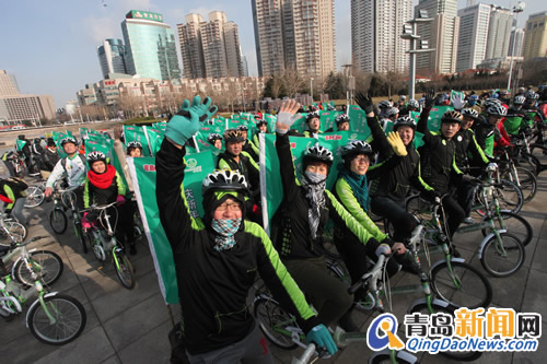 ??? 12月22日上午,島城市區(qū)氣溫-4℃,但是這些都擋不住150多名島城“綠色騎士”的熱情。9時(shí)30分“綠色騎士”們集結(jié)在五四廣場(chǎng)“五月的風(fēng)”下并排成整齊的隊(duì)列,隨著他們的歡呼,由青島報(bào)業(yè)傳媒集團(tuán)、青島市體育局、世園會(huì)執(zhí)委會(huì)主辦,康寶萊(中國(guó))保健品有限公司協(xié)辦的“跨越2012青島全民低碳行”活動(dòng)正式開始。