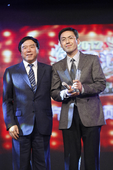 ????齊魯臺(tái)總編室主任許振(右)領(lǐng)取《綜藝》“年度地面頻道”大獎(jiǎng)