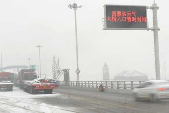青島的各條高速和膠州灣大橋處在封閉狀態(tài) 張力偉 攝