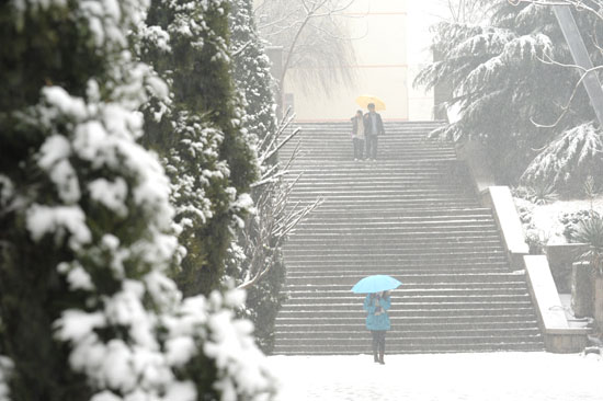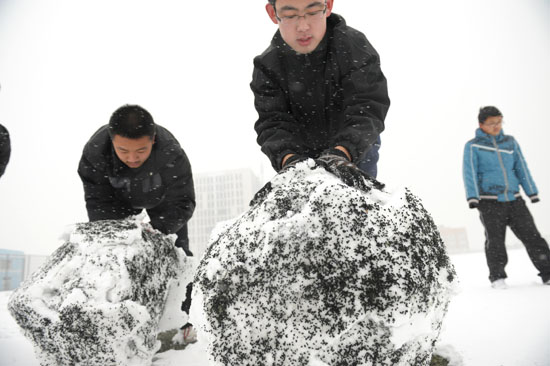 四方科技大校區(qū)內(nèi)學(xué)生正在滾雪球堆雪人