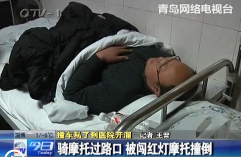 遭遇車禍被撞,就夠窩心的了,然而更讓人窩心的是,這肇事者把傷者送到醫(yī)院后竟然腳底抹油,溜了。即墨市民尹先生昨天就碰到了這么個不地道的司機。昨天下午四點,記者在即墨市人民醫(yī)院的病房里見到了受傷的尹先生。尹先生告訴記者,事情發(fā)生在中午他下班的時候,當(dāng)時綠燈亮起,他騎著摩托車過馬路,卻被一輛闖紅燈的摩托車撞倒了。出事后,當(dāng)事人雙方的家人也很快趕到了現(xiàn)場,尹先生家人也報了警,當(dāng)著交警的面,雙方都簽