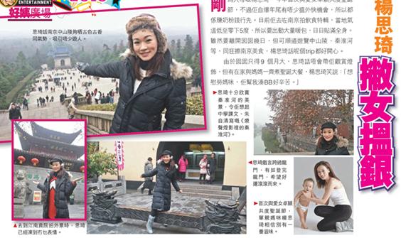 ????日前她去南京拍攝飲食特輯,當(dāng)?shù)貧鉁氐偷搅阆挛宥?,所以要出動大量暖包,天天貼滿全身。雖然要離開女兒幾日,但是可以看中山陵、秦淮河等,大吃南京美食。