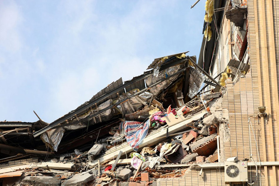 坍塌現(xiàn)場(chǎng)。 上海:四川大樓頂樓兩層凌晨坍塌 |