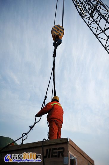 ????碼頭上的海風(fēng)冷得刺骨,但是賣力工作的賈自剛和其他工人一起把厚厚的鴨絨服也脫掉了。“干起活來(lái)不方便也穿不??!”他的額頭上還滲出了細(xì)密的汗珠。????