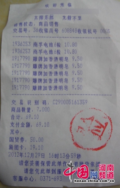 ????近日,記者接到消費者投訴稱,2012年12月29日在鄭州某大型超市內(nèi)購買了6節(jié)5號南孚聚能環(huán)電池,回家后無意中發(fā)現(xiàn)生產(chǎn)日期標注的是2013年1月份,竟然是“早產(chǎn)兒”。目前,南孚廠家代表已向消費者進行賠償,但廠家同時堅稱該產(chǎn)品為假貨。