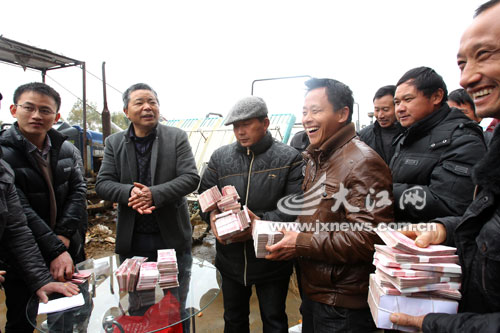 1月6日,天寒地凍,一場令人熱血沸騰的農(nóng)民年終頒獎大會在安義縣鼎湖鎮(zhèn)一農(nóng)家大院舉行:院子中央的一張小玻璃桌格外令人關(guān)注,桌上擱著厚厚一堆現(xiàn)金,共有140多萬元!被叫到名字的農(nóng)民挨個上前,喜滋滋從種糧大戶凌繼河手中領(lǐng)取年終獎。其中,僅“種糧狀元”劉高美一人就獲得了16.3萬元獎金。