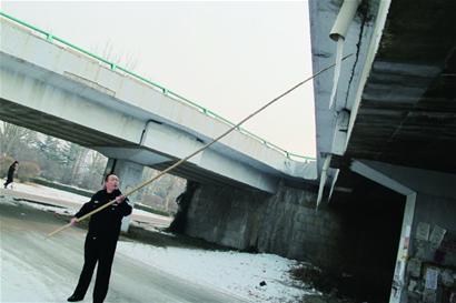 ????島城日前的大雪降溫天導(dǎo)致流亭高架橋落水管結(jié)出細(xì)長(zhǎng)、光亮的冰錐,大量冰錐形成獨(dú)特的美景,卻也給過(guò)往行人車(chē)輛帶來(lái)安全隱患?!皫滋靵?lái),因冰錐墜落引起的交通堵塞已發(fā)生兩三起?!绷魍じ呒軜蚺沙鏊窬f(shuō),一根大冰錐有四五斤重,如果天氣轉(zhuǎn)暖就會(huì)慢慢融化,加上橋體在車(chē)輛作用下發(fā)生震動(dòng),很容易墜落。為消除隱患,民警用大竹竿對(duì)車(chē)輛必經(jīng)路段上的冰錐進(jìn)行了清除,并提醒行人和車(chē)輛提防“暗器”傷人。(記者 王濤 通訊員 欒云海 攝影報(bào)道)
