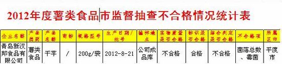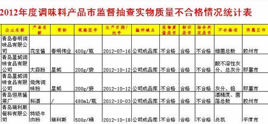 ????昨天青島市質(zhì)監(jiān)局在網(wǎng)站上公布了我市去年第四季度部分食品市質(zhì)量監(jiān)督抽檢結(jié)果,此次抽檢了肉制品、調(diào)味料、醬類、食用油脂制品、蛋制品、薯類食品6類產(chǎn)品,共抽檢了104家企業(yè)的195批次產(chǎn)品,9家企業(yè)的10批次產(chǎn)品被檢出不合格。不合格產(chǎn)品中大部分是產(chǎn)品實(shí)物不合格,僅有1批次產(chǎn)品是標(biāo)簽標(biāo)識不合格。 ????市質(zhì)監(jiān)局工作人員介紹,這些產(chǎn)品都是在去年7月至10月從企業(yè)成品庫直接取樣的。記者注意到,其中青島宏順食品有限公司生產(chǎn)的五香肉干被檢出檸檬黃、日落黃超標(biāo)。食品專家介紹,人如果長期或一次性大量食用檸檬黃、日落黃等色素含量超標(biāo)的食品,可能會引起過敏、腹瀉等癥狀,當(dāng)攝入量過大,超過肝臟負(fù)荷時(shí),會在體內(nèi)蓄積,對腎臟、肝臟產(chǎn)生一定傷害。(記者 孫啟孟) ????其他被曝光的企業(yè)和產(chǎn)品還有: ????青島新漢邦食品有限公司的干芋(不合格項(xiàng):菌落總數(shù)、霉菌) ????膠州市昌盛蛋制品廠的咸鴨蛋(不合格項(xiàng):菌落總數(shù)) ????青島可頌食品有限公司的植脂奶油(不合格項(xiàng):標(biāo)簽) ????青島和旺食品有限公司的黃豆醬(不合格項(xiàng):食鹽項(xiàng)目) ????青島春明調(diào)味品有限公司的花生醬(不合格項(xiàng):細(xì)菌總數(shù)) ????青島星城調(diào)味食品有限公司的大蒜粉(不合格項(xiàng):酸不溶性灰分、總灰分) ????青島星城調(diào)味食品有限公司的燒烤調(diào)味粉(不合格項(xiàng):灰分、鉛) ????青島恒泉醬菜廠的料酒(不合格項(xiàng):酒精度、菌落總數(shù)) ????青島瑞利斯餐料有限公司的特級牛肉粉(不合格項(xiàng):總氮) |