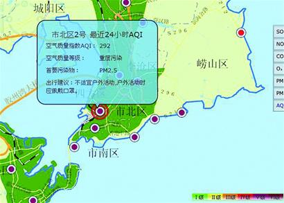 ????根據(jù)市環(huán)保局的監(jiān)測指標,空氣質(zhì)量指數(shù)AQI數(shù)據(jù)在介于200與300之間為重度污染,大于300為嚴重污染,記者看到監(jiān)測數(shù)據(jù)顯示市北區(qū)2號監(jiān)測點和李滄區(qū)兩個監(jiān)測點的AQI數(shù)據(jù)均大于250,最高的市北區(qū)2號監(jiān)測點AQI指標達到了292,已經(jīng)非常接近嚴重污染標準。