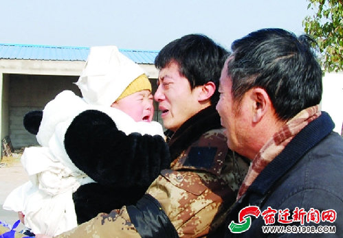 圖為1月19日,親人抱著曹冷剛滿周歲的兒子參加追悼會。