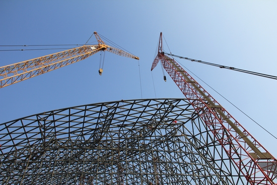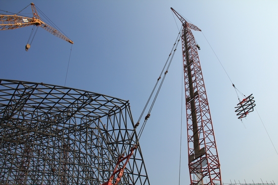 青島新聞網(wǎng)1月23日訊 當(dāng)最后一塊鋼結(jié)構(gòu)填補(bǔ)了空缺位置,全亞洲最大的鋼結(jié)構(gòu)植物館之一——青島世園會植物館,昨日終于封頂大吉。龐大的鋼結(jié)構(gòu)呈現(xiàn)出曲線流暢的立體葉片造型,玻璃幕墻安裝工作正在有序進(jìn)行當(dāng)中。2013年5月底,整個植物館將披上由15000多塊超白鋼化玻璃組成的閃亮外殼,9月整個植物館將全面竣工,以最佳姿態(tài)迎接試運(yùn)營檢驗和游客的光臨。