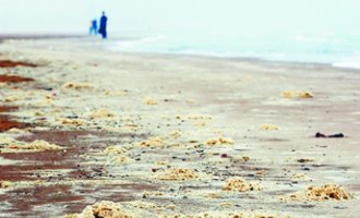 ????下午4時(shí)30分左右,記者趕往事發(fā)現(xiàn)場,沿著海爾路路口走到沙灘后發(fā)現(xiàn),在近海的沙灘上沙子大部分都是純凈的,但在沙灘上明顯的能看到有一條黃色的泡沫和粉狀物的混合體,浪花還不時(shí)一波又一波拍向沙灘,白色的浪花中都混合著大量的泡沫,海浪褪去之后,泡沫就留在了沙灘上。