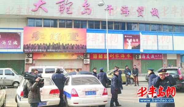 1月25日上午9點57分,陽谷路上,遭遇干海貨店集體關(guān)門的工商執(zhí)法人員非常無奈。記者 王媛