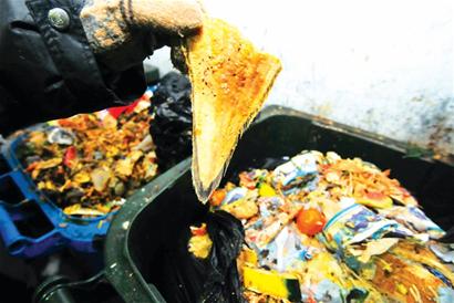 ????王如勛從事環(huán)衛(wèi)工作已經(jīng)有十多年的時間了,在青島還沒有餐廚垃圾車之前,他開著普通的環(huán)衛(wèi)收運車輛往來于云霄路的飯店,負責處理飯店產(chǎn)生的餐廚垃圾。王如勛說,雖然干了很長時間,但是看到垃圾桶內(nèi)大量的剩菜剩飯,每一次都覺得很心疼?!坝幸淮卧谝患绎埖晔绽鴷r,垃圾桶里放著一只完整的雞,酒店工作人員說,這只雞是專門做湯的,客人只喝湯,沒有吃雞。 ”王如勛說,“還有一次,在清理一家烤鴨店的垃圾桶時,竟然在桶里發(fā)現(xiàn)了十幾只沒有動過筷子的烤鴨,飯店工作人員說前一天沒有吃上,第二天有些壞了,所以就扔了。 ”讓王如勛沒有想到的是,還沒等處理完垃圾,飯店周圍拾荒的人便把垃圾桶圍了起來,不一會剩下的烤鴨都被分走了。