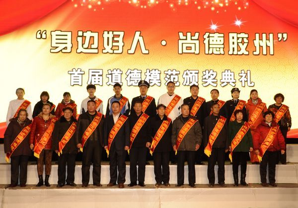 經(jīng)過膠州市一個多月的層層推薦、篩選、綜合評定——視病人如親人的護士長馬文娟、首例捐獻器官挽救7人生命的劉慧麗、勇救落水女教師不幸遇難的教育工作者管廷江、救人之后悄然離去的好司機李德濤、40年義務為居民維修電器的張連煒、常年照顧癡呆智障叔公的鄧延花、悉心照顧“玻璃人”同學的90后初中生匡昊天、王銳;25年如一日清理垃圾的城市美容師祁緒云等21人被評為“膠州道德模范”。