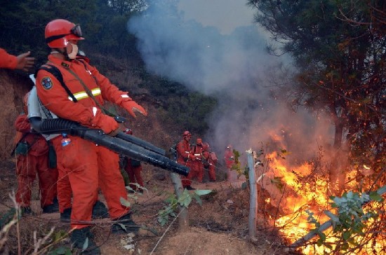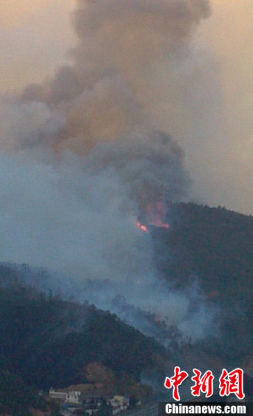 2月7日,云南省大理森警支隊的官兵在滅火。新華社 胡曙利攝