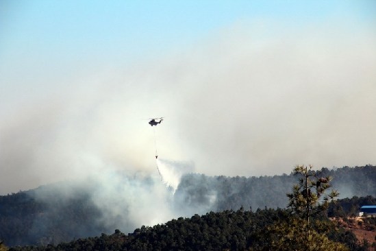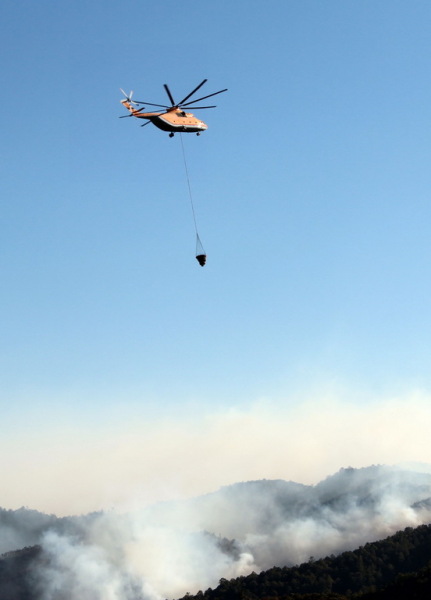 2月7日,直升機投入火場滅火。新華社 李學(xué)鑫 攝