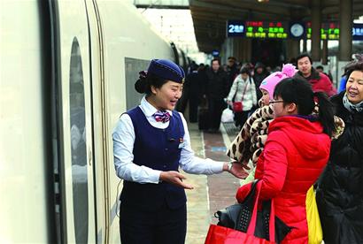 2001年,從鐵路學(xué)校畢業(yè)后王紅開始了列車員工作,一做就是11年,她從一名普通的列車員再到列車廣播員,三年前通過考試成長為一名列車長。11年來她只在家里過過兩個春節(jié),今年的春節(jié)她同樣沒法在家過。從最初的綠皮車到空調(diào)車,再到如今的動車、高鐵,王紅見證了鐵路的變遷,也深知游子返鄉(xiāng)旅途的不易,她的心中總是裝著旅客?!盁o論是列車員還是廣播員,還是列車長,都是為旅客服務(wù),這是我們的職責(zé)?!?/p>