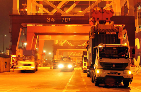 在老港區(qū),大港公司專門制定了“六抓六確?!钡谋U洗胧?,疏運、生產(chǎn)兩大會戰(zhàn)紅紅火火,旗開得勝。堅守節(jié)日生產(chǎn)的一線將士干勁沖天,大干快上,先后創(chuàng)出火車晝夜裝船761節(jié),晝夜裝卸車789節(jié),大豆單班裝火車14節(jié)、晝夜吞吐量19.5萬噸,銅精礦當班卸船4842噸、單班單箱灌包2996噸等一系列生產(chǎn)佳績。