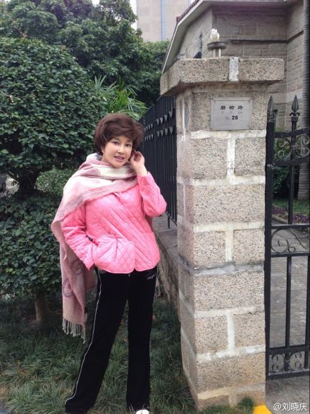 劉曉慶在自家別墅前拍照。