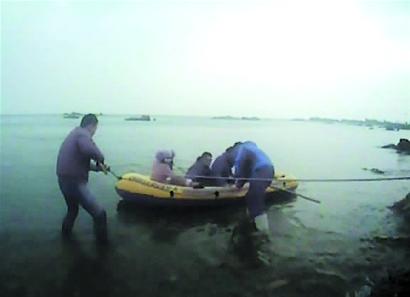 民警立即向指揮中心要求增援,分局指揮中心立即指令中韓邊防派出所聯(lián)系搜救游艇前往施救。游艇從石老人海水浴場(chǎng)出發(fā)后,由于海水出現(xiàn)少量結(jié)冰現(xiàn)象,加大了行進(jìn)難度。情急之下,民警聯(lián)系了極地海洋世界的工作人員,他們很快便提供了一艘橡皮艇。救援人員迅速跳上船,奮力地向海中劃去。大約10分鐘,橡皮船漸漸靠近了游客受困的礁石,民警攙扶著兩人將其拉上船,岸上的救援人員合力將船拉回岸邊。