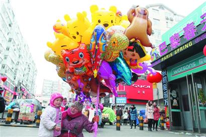 ????春節(jié)過(guò)后,孩子們喜歡的“喜羊羊”“小熊維尼”“海綿寶寶”等卡通圖案的氫氣球在街頭隨處可見(jiàn)。昨天上午,記者來(lái)到臺(tái)東步行街,看到幾個(gè)商販?zhǔn)掷锬弥鞣N圖案的氫氣球大聲地吆喝著,市民陳女士帶著3歲大的孫女彤彤來(lái)到商販跟前,彤彤看到花花綠綠的氣球非常喜歡,非要買一只 “喜羊羊”圖案的氫氣球,陳女士立刻掏出5元錢,給彤彤買了一個(gè)。