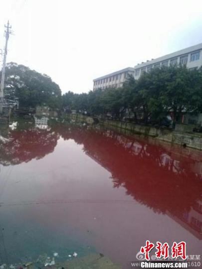 ????19日,網(wǎng)友爆料浙江省溫州市瑞安汀田街道金后村有一河流因受污染,變成一條“紅色河”,眾多網(wǎng)友表示,環(huán)保局長又得游泳去了。20日,記者聯(lián)系到溫州瑞安市環(huán)保局,該局辦公室工作人員池仁富告訴記者,昨晚,溫州市環(huán)保局已對該條河流進(jìn)行勘測,經(jīng)勘查,河水是因一位婦女在河內(nèi)清洗紅色燃料的編織袋而變色的。