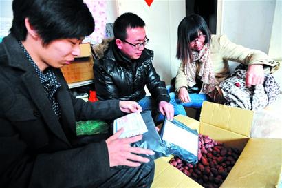 ????從前天開始,連續(xù)兩天,王金鳳的寧夏老鄉(xiāng)們通過記者聯(lián)系上了王金鳳,他們利用周末的時間來到王金鳳家?guī)兔Α!拔业募依锖軄y,照看小海還要賣棗,平時沒時間打掃屋子,老鄉(xiāng)們一來,我終于有時間收拾屋子了?!弊蛱熘形?,記者再次來到王金鳳家,不到10平方米的小家已經(jīng)整齊多了。王金鳳的3名老鄉(xiāng)正在擦拭著新疆紅棗,幫她稱重裝袋,然后按照網(wǎng)店購物的地址發(fā)送快件。從早上9點忙到下午2點,3名老鄉(xiāng)終于幫王金鳳搞定了網(wǎng)店訂購的紅棗,并發(fā)出了第一批快件。
