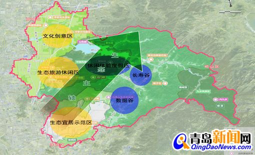 該方案突出生態(tài)保護的發(fā)展理念、山城相融的空間構(gòu)想和旅游文化創(chuàng)意產(chǎn)業(yè)的合理布局,以構(gòu)建區(qū)域生態(tài)安全格局為開發(fā)前提,將地域特征分為生態(tài)敏感型、生態(tài)控制型和生態(tài)提升型,分別對應(yīng)禁止建設(shè)區(qū)、限制建設(shè)區(qū)和適宜建設(shè)區(qū),分不同梯度進行保護、建設(shè)和開發(fā)。特別是注重利用地勢地形,讓自然山川和城市景觀協(xié)調(diào)相宜、自然融合,構(gòu)造“十里青山半入城,點點溪塘好人家”的生態(tài)宜居家園。