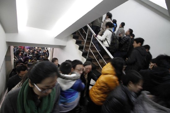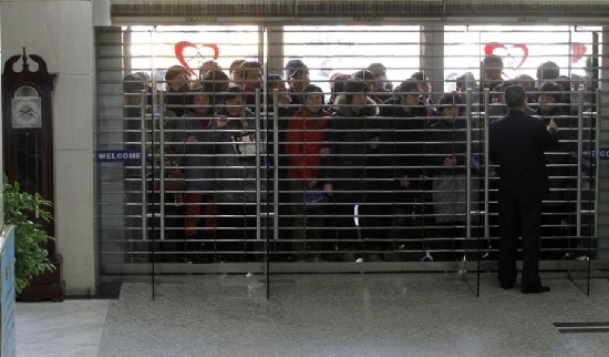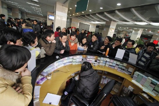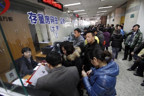 3月4日,江蘇省南京市華僑路房產(chǎn)交易中心出現(xiàn)了爆棚,人們向潮水一樣涌進(jìn)交易大廳。(樂(lè)濤)