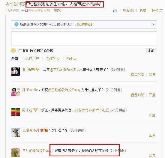 ????在微博上,網(wǎng)友最新更新:“警察把人帶走了,被捅的人還在搶救?!?/p>