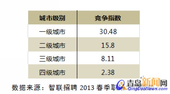 從競爭程度來看,一線城市的競爭性遠(yuǎn)遠(yuǎn)高于其他城市,一線城市競爭指數(shù)為30.48,幾乎是二線城市競爭度的兩倍,是三線城市競爭度的四倍。