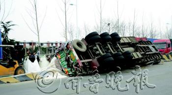 側(cè)翻的大貨車。潘旭業(yè)攝
