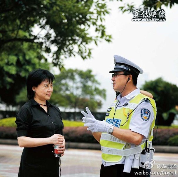 2010年8月20日,薄谷開來探訪在一線執(zhí)勤的王立軍。(圖片來源:南都周刊)