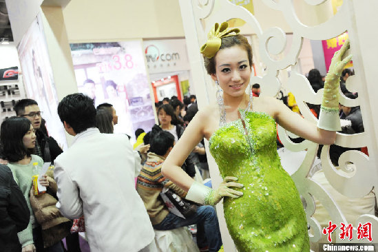 3月16日,2013年春季中國(北京)婚博會在國家會議中心開幕,現(xiàn)場靚麗“婚?!边M行展示,大秀性感。據(jù)悉,本次婚博會為期兩天,將于3月17日閉幕。(中新網(wǎng)記者張龍云 攝)