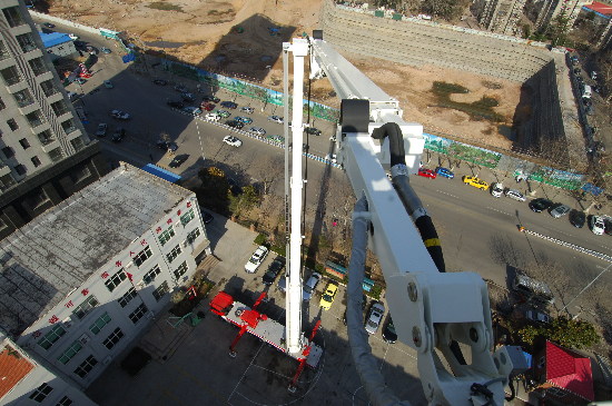 101米登高平臺消防車正在準(zhǔn)備升起