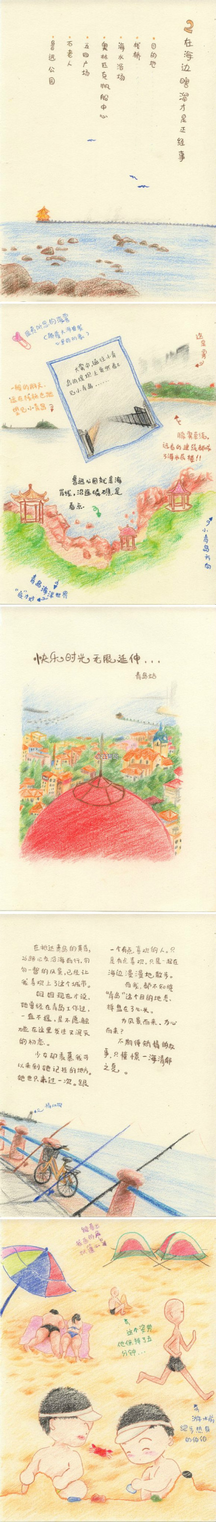 “2011年6月17日,離開住了一年的首都,向往大海邊的城。感覺這才是自己第一次真正意義上的旅行。吹著濕潤(rùn)的海風(fēng)雨霧,流連在寧?kù)o的老建筑山路,畫著悠然,心意舒懶,這就是我想要的吧:快樂時(shí)光無(wú)限延伸,青島站?!弊罱?,一個(gè)名為《我用色彩表述生活,耗時(shí)一年完成的青島旅行繪本》的帖子被網(wǎng)友頻繁轉(zhuǎn)載,繪本的主角是青島風(fēng)景,而繪本的主人是一名曾經(jīng)來(lái)青旅游的佛山女孩。昨天,記者聯(lián)系