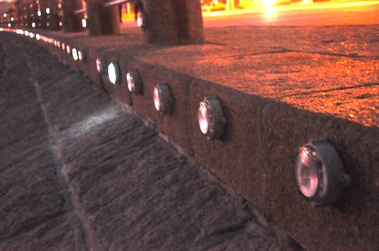景觀小燈不大,輪流閃爍發(fā)出白色的燈光