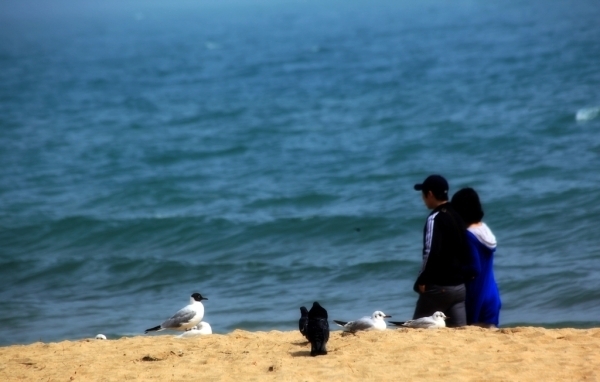???? 韓國的海鮮品質(zhì)不錯(cuò),可烹制方式極為簡(jiǎn)單,要么一鍋燴,要么燒烤,加上一大桌小碟小碗,就著燒酒、啤酒,陣容十分龐大。午餐期間,窗外的濃霧一直陪伴,心想這回海云臺(tái)之行也將成為泡影。一番觥籌交錯(cuò)之后,沿著海云臺(tái)的海濱大道步行,天空竟然開始放晴。時(shí)而飄過的薄霧匯集著暖暖的陽光,把海灘裝扮得如仙境一般,由于入春不久海水尚涼,大部分游客還是在沙灘上休憩嬉戲,與海鷗對(duì)歌,看海浪起舞,小日子過得十分愜意。如此恬靜優(yōu)美的海岸線,竟引發(fā)了一位韓國導(dǎo)演的奇思妙想,他以海云臺(tái)為背景,編織了凄美愛情與兇險(xiǎn)災(zāi)難交匯的故事。電影《海云臺(tái)》是以被巨大海嘯席卷的釜山海云臺(tái)為背景,講述危急中求生存的人們相愛相助的真情。電影的拍攝把很多人們熟知的當(dāng)?shù)貥?biāo)志性景點(diǎn)都囊括進(jìn)去,成為愛情的見證地,災(zāi)難的發(fā)生地。影片上映后帶動(dòng)了海云臺(tái)的影響力和票房收入的雙贏,不僅觀眾突破千萬大關(guān),海云臺(tái)浴場(chǎng)的游客也增長(zhǎng)了10%。