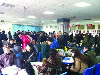 昨日上午9時許,記者來到市北區(qū)房地產(chǎn)交易中心,大廳內(nèi)早已擠滿了前來交易的市民,取號服務(wù)臺排了數(shù)十米的長隊,數(shù)名保安在維持秩序。一些等待已久的排隊者席地而坐。在等候交易的王女士抱怨道,等了2個多小時了,依然沒有輪到自己辦理業(yè)務(wù),“春運時候到火車站買票也不過就這樣,真沒想到買套房子還這么難。 ”