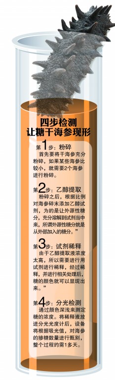 近日,央視關(guān)于青島干海參市場(chǎng)混亂的問題進(jìn)行了深度報(bào)道,報(bào)道播出之后,青島市民對(duì)自己日常買的干海參產(chǎn)生了懷疑——“我非常信任的補(bǔ)品干海參真的含糖嗎?”為了幫助市民解答這個(gè)疑問,記者取得了30余份市民送來的樣品,在專家的協(xié)助下,我們抽取了其中13份具有代表性的干海參作為樣本,委托青島一家國(guó)家級(jí)的水產(chǎn)研究所進(jìn)行了檢測(cè)。結(jié)果讓人震驚,一份被送來的福興長(zhǎng)島海參的糖含量,竟然達(dá)到了41.6g/ 100g。這也就意味著,市民購(gòu)買的一斤海參中,只有半斤多點(diǎn)海參,其余的都是糖。 專家指出,有些檢測(cè)當(dāng)中只發(fā)現(xiàn)少量糖摻入的干海參同樣存在問題,“這些海參來自熱帶海域,由于生長(zhǎng)期非常短,營(yíng)養(yǎng)價(jià)值很小”。 干海參含糖量竟達(dá)41.6g/100g 近日,記者從市民當(dāng)中收取了30多份干海參樣品,為了讓市民了解到他們手中的海參到底有沒有被摻入糖,記者聯(lián)系到了島城某國(guó)家級(jí)的水產(chǎn)研究所??紤]到某些海參類別相同,我們挑了其中13個(gè)具有代表性的樣品,作為樣本檢測(cè)。 4月16日,記者從科研人員手中接到了一份檢測(cè)結(jié)果,在記者送檢的13個(gè)樣本當(dāng)中,大多數(shù)都存在較多的含糖量。其中,市民張女士提供的,從福興長(zhǎng)島海參購(gòu)買的海參的含糖量竟然達(dá)到了41.6g/100g。 這也就意味著,在市民張女士購(gòu)買的1斤海參當(dāng)中,有4兩多是糖,只有半斤多是干海參。 “竟然含有這么多糖?”聽到記者告訴她的數(shù)據(jù)后,張女士甚至開始懷疑自己的耳朵,“我購(gòu)買的時(shí)候,銷售人員告訴我說,他們的海參都是優(yōu)質(zhì)的干海參,不含糖?!?/p> 張女士說,她購(gòu)買的海參價(jià)格是2760元/斤?!鞍凑者@個(gè)價(jià)格算下來,我花了這么多錢買到的,還不到6兩干海參?!蓖瑫r(shí),張女士還折算了一下,如果把糖取出,她購(gòu)買的海參價(jià)格得四千多元一斤,“可是,我家里有糖尿病人,讓家人吃這么多糖,這不是害人嗎?”說到這里,張女士有些氣憤,她原本認(rèn)為吃海參是為了補(bǔ)身體的,沒想到,因?yàn)樘呛刻?,起到了反作用?/p> |