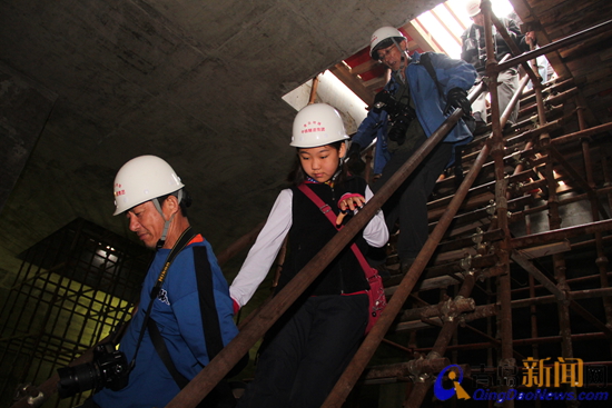 ????為了保證這些小參觀者的安全,中鐵隧道集團青島地鐵 太平角公園站的工作人員們事先已經(jīng)做了精心準備,安全措施十分細致。要進到施工現(xiàn)場,必須先下將近2米多高的樓梯,加上下雨,施工現(xiàn)場比起平常更容易滑倒。工作人員不時大聲提醒著正在下樓梯的小朋友和家長?!皹翘莺芏?,請家長走在前面,拉好各自孩子,慢慢走,不著急,一定要扶好?!?/span>