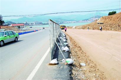 ????除了道路鋪設(shè)已完畢外,南半幅路基一側(cè),不少施工人員正在埋設(shè)一段段的白色管子?!斑@鋪設(shè)的是路燈及交通信號燈的管線,管子快下完了!”一位施工人員對記者說。再看北半幅道路,被圍擋圍著,施工人員正抓緊施工。在山水名園小區(qū)以南段,北半幅路面已基本修好,并且鋪上了首層瀝青。繼續(xù)往東走,確保修路工程能夠順利進(jìn)行,北側(cè)山體正在進(jìn)行加固。