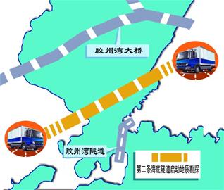 ????根據(jù)航行通告中公布的勘察地點(diǎn)的經(jīng)緯度,記者查閱得知,第二條海底隧道的初步線路位于膠州灣隧道和膠州灣大橋之間。