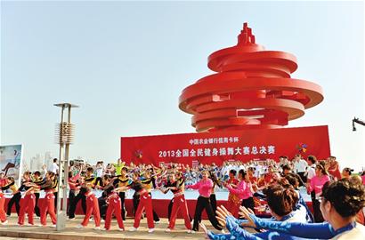 ????由國家體育總局體操運動管理中心、中國健美操協(xié)會、青島市政府聯(lián)合主辦的2013年“中國農(nóng)業(yè)銀行信用卡杯”全國全民健身操舞大賽總決賽昨天在五四廣場盛裝啟幕。