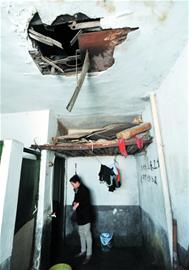 ????“夏天西曬,家里熱得坐不住人,冬天在屋里穿著棉衣還覺著冷?!奔易∪嗣衤?62號的江女士告訴記者,她現(xiàn)在住的這個筒子樓是1958年建的,房屋居住面積不到15平方米,只有一扇朝西的窗戶,家里完全不透氣。因為沒有做飯的位置,江女士在不到1米寬的樓梯過道中,用木板間隔起一個面積不到0.3平方米的狹小空間,當廚房使用?!斑@么小的空間,連個煤氣罐都放不下,30多年來,我家都是用一個小電熱爐做飯。江女士家住在頂樓,和其他鄰居一樣,因為常年漏雨,屋頂和墻面長了綠色的霉菌。整層樓公用的衛(wèi)生間和走廊的屋頂破了許多大洞,都能看到天空。據(jù)介紹,瑞昌路三角地片區(qū)改造拆遷,臨時過渡期為36個月,也就是說,拆遷后的居民3年后就能住進新套房。