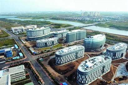 ????穿過仰口隧道后不久,一塊寫有“藍色硅谷”字樣的指示牌格外顯眼,而藍色硅谷的核心區(qū)也就在這片緊鄰藍色大海的空地上?!艾F(xiàn)在可不是空地了,幾個重點項目早就已經開建,有的甚至已經封頂了?!彼{色硅谷核心區(qū)管委會工作人員指著一片已經初具規(guī)模的建筑物,一一向記者作著介紹。從濱海大道拐入一條寬敞的瀝青道路,緊鄰道路北側的一片造型異樣的建筑物十分顯眼,灰色的整體外墻,部分樓體用石頭樣式做點綴。工作人員告訴記者,這一片建筑物是青島海洋科學與技術國家實驗室,主要建設海洋藥物及生物制品等15個功能實驗室,深??蒲械?個重大平臺和海水資源綜合利用等8個工程技術研究中心。項目分東、西兩個區(qū)域,西區(qū)分三期建設。目前,西區(qū)一期工程已經完工;二期工程已順利封頂,正在進行室內裝修和設備安裝。