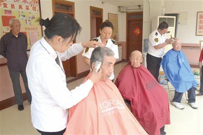 ????“考慮到老人們的身體特點(diǎn),天氣變暖,剪剪頭發(fā)更能讓他們舒服些,這次來我們都帶著工具,準(zhǔn)備為老人義務(wù)剪發(fā)?!敝驹刚呓颊f。在一番噓寒問暖后,三位老人坐了下來,志愿者們幫他們圍上圍裙,推子、剪子齊上陣,雖然都是自學(xué)的,但他們的認(rèn)真勁和逐漸熟練的技藝絲毫不比專業(yè)人員差,一陣忙活后,老人們便都有了新發(fā)型?!靶』镒永淼谜婧?,我感覺清爽了許多?!崩硗臧l(fā)的張大爺高興地對記者說。