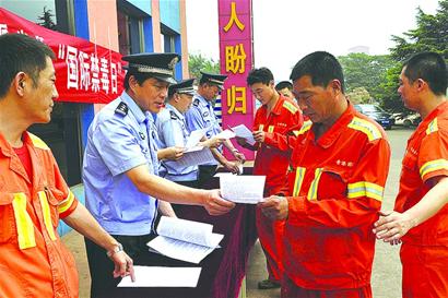 ????昨日上午,市禁毒委在五四廣場開展了紀(jì)念“6·26”國際禁毒日大型禁毒宣傳活動。市公安局、市衛(wèi)計委、市中院、市檢察院、市教育局、市安監(jiān)局、市食藥局、團(tuán)市委、市婦聯(lián)9個部門相關(guān)工作人員現(xiàn)場開展咨詢活動。