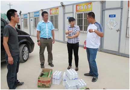 ????為保障建設者的身體健康,確保他們全身心投入到安全工作中,7月10日,集團總經理助理郭淼代表集團開展了夏季送清涼活動,在炎炎夏日給堅守崗位的建設者們送上了絲絲涼意,為他們送去了西瓜、礦泉水等清涼食品?!扒鄭u到了夏季,天氣悶熱,集團的關懷讓我們卯足了干勁,將保質保量的完成工程任務”董志強表示。????